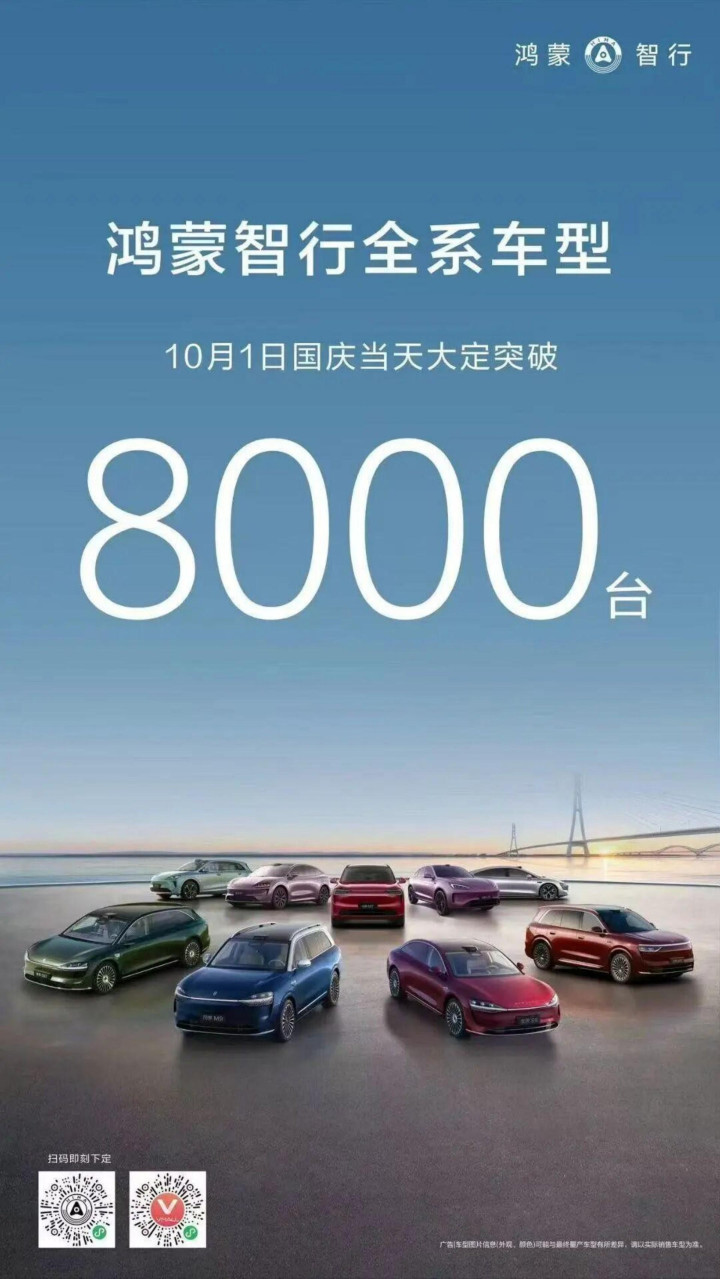 10月第一天,鸿蒙甚至晒起来当日销量:全新车型国庆当天大定突破8000辆。